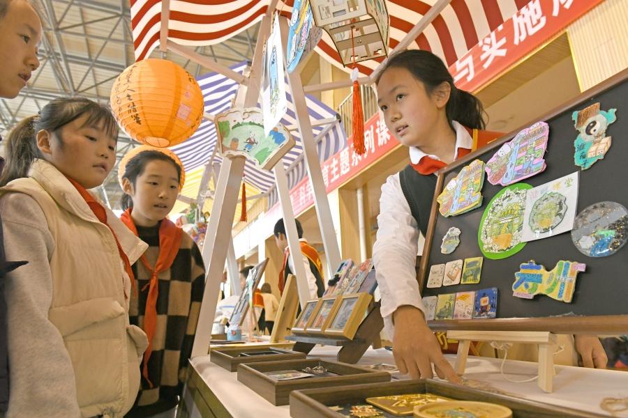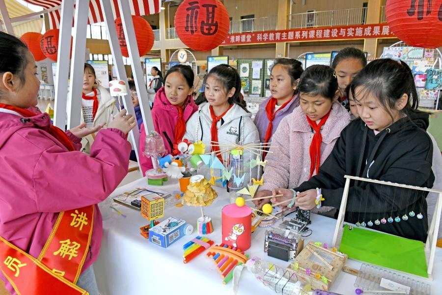 2025年11月27日股民配资网站,安徽省淮南淮师附小山南校区学生在“淮畔课堂”科学教育主题系列课程成果展现场了解同学们的科技小发明。作为首批全国中小学科学教育实验区,安徽省淮南高新区立足本土文化资源开设“淮畔课堂”,推出“煤海探秘”“豆腐工坊”“芍陂水韵”“淮南子探奇”“楚文化探秘”“成语实验室”六大主题课程,推动中小学科学教育与本土地域文化有效结合,让科学教育看得见家乡,让实践创新摸得着文化。(陈彬 文/图)